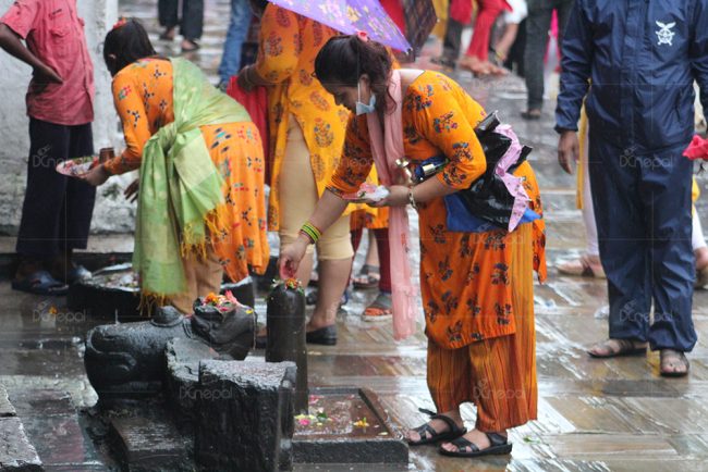 साउनको सोमबार शिवलाई शुद्ध जल चढाएर खुसी बनाउन सकिन्छ भन्ने शास्त्रीय मान्यता छ । साउनको महिना शिव भगवानको प्रिय महिना पनि हो। नेपालमा कोरोनाको संक्रमण देखिएपछि गत चैत्र ११ गतेदेखि बन्द भएका पशुपतिनाथका ढोकाहरु भक्तजनहरुका लागि अझै खुलेका छैनन्। ढोका नखुले पनि भक्तजनको आस्था छेकिएको छैन र भक्तजनले बाहिरैबाट पुजा आराधना गरेका छन् ।
