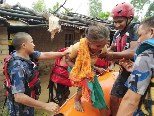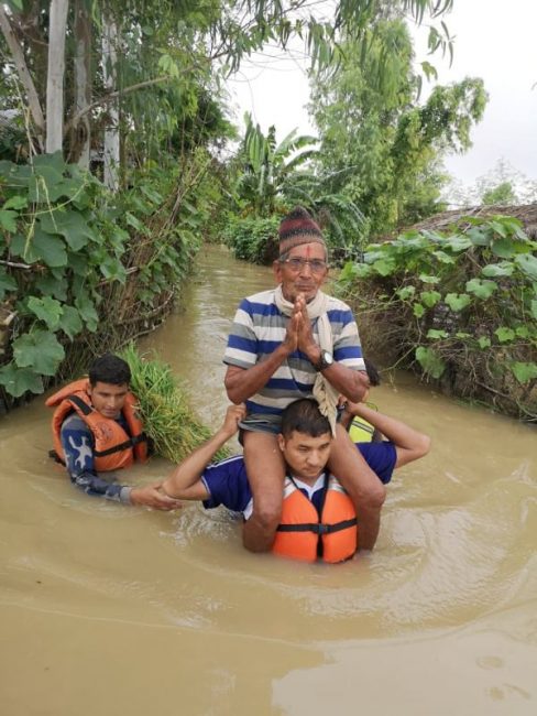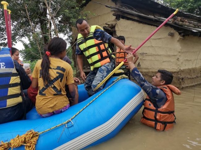 बाढी तथा डुवानमा परेकाहरुको एपीएफ टोलीद्वारा उद्वार