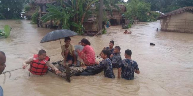 काठमाडौं। कैलाली जिल्लाको टीकापुर नगरपालिका वडा नम्बर ७ बैदी र वडा नम्बर ९ खक्रौला स्थित मोहना नदीमा आएको बाढीले सो स्थानमा रहेका करीव तीन सय ३० घरभित्र पानी पसेर डुबानमा परेकाहरुको एपीएफ टोलीले उद्धार गरेको छ। सो ठाउँमा घरहरु डुबानमा परेको भन्ने जानकारी पाउना साथै सशस्त्र प्रहरी बल, नेपाल बोर्डर आउट पोष्ट खक्रौलाबाट एपीएफ टोली खटिई गई उद्धार कार्यमा सकृयताका साथ जुटेको थियो।