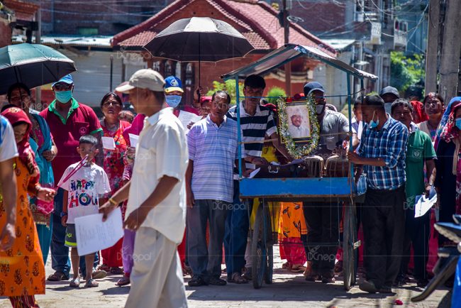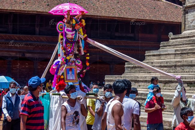जात्राका क्रममा मृत्यु भएका परिवारबाट घिन्तान्गिसी नाच नचाई दुई चार जनाको समूहमा मात्रै नगर परिक्रमा गराइएको छ। साथै जात्राका अन्य दिनहरुमा पनि नाचगान नहुने जनाइएको छ।