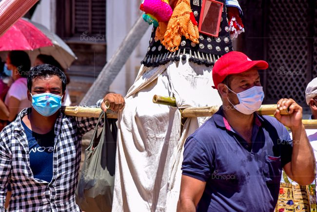 कोरोनाका कारण भक्तपुर नगरपालिकाले यस वर्षका जात्रा औपचारिकतामा मात्रै सीमित गर्न नगरपालिकाले नगरबासीलाई अनुरोध गर्दै आएको छ। जात्रालाई अन्य वर्षहरुमा जस्तो हुल नबनाउन नगरपालिकाले यो वर्ष स्वयमसेवक परिचालन गर्ने भएको छ। जात्रा भीडभाड नहोस् भन्ने उद्देश्यका साथ नगरको वडा नं १ देखि १० सम्मकै सम्पूर्ण वडाहरुमा स्वयमसेवक परिचालन हुने भएको हो। परापूर्वकालदेखि सौहार्दपूर्ण रुपमा चल्दै आएको जात्रा स्वयमसेवक परिचाल हुन लागेको सम्भवत यो पहिलो पटक हो।