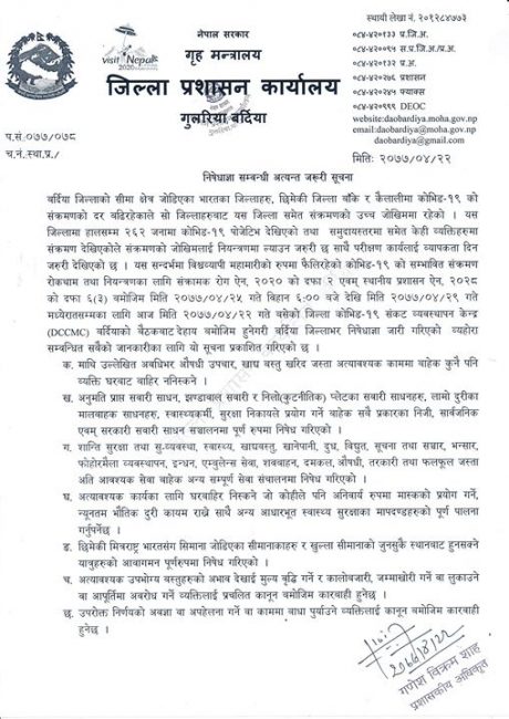 कोरोना महामारीको जोखिम बढेपछि १८ जिल्लामा निषेधाज्ञा