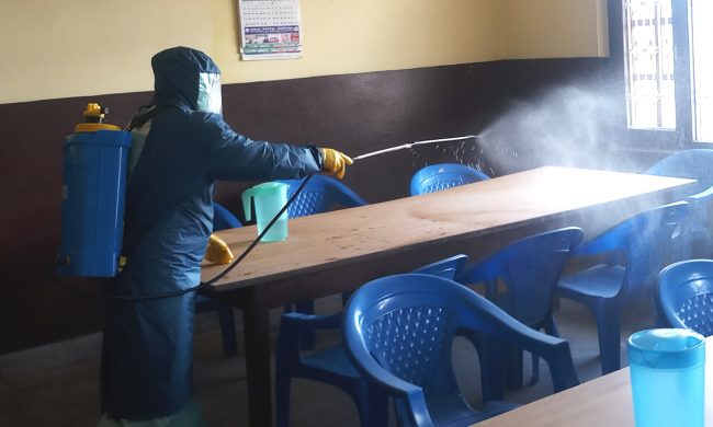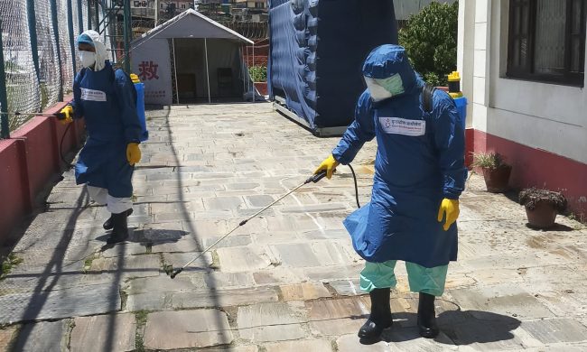 अखिल नेपाल फुटबल सङ्घले बिहीबार एक विज्ञप्ति जारी गरी कोभिड–१९ को सम्भावित सङ्क्रमण रोक्ने स्वास्थ्य ‘प्रोटोकल’ अपनाउन सुरु गरेको जनाएको छ । एन्फाले सुन्दर ढोका साथी सेवासँगको सहकार्यमा एन्फा परिसर, होस्टेल र कार्यालय किटाणुनाशक छरेको जनाएको छ ।