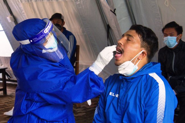 काठमाडौं । फिफा विश्वकप छनोट र एशियन कप छनोटका लागि बन्द प्रशिक्षणमा डाकिएका राष्ट्रिय फुटबल टोलीका ११ खेलाडीसहित २५ जनाकोे कोरोना परीक्षण गरिएको छ । लगनखेलस्थित पाटन अस्पतालमा आज पहिलो चरणमा ११ खेलाडीसहित एक प्रशिक्षक, एक फिजियो र एन्फा होस्टलका १२ कर्मचारीसहित २५ जनाको कोरोना परीक्षण गरिएको अखिल नेपाल फुटबल सङ्घ (एन्फा) ले जनाएको छ ।