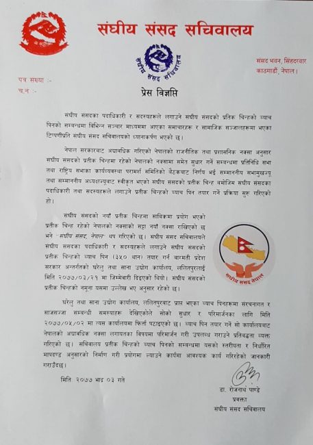 संसद् सचिवालयले फिर्ता गर्यो सांसदको लोगो