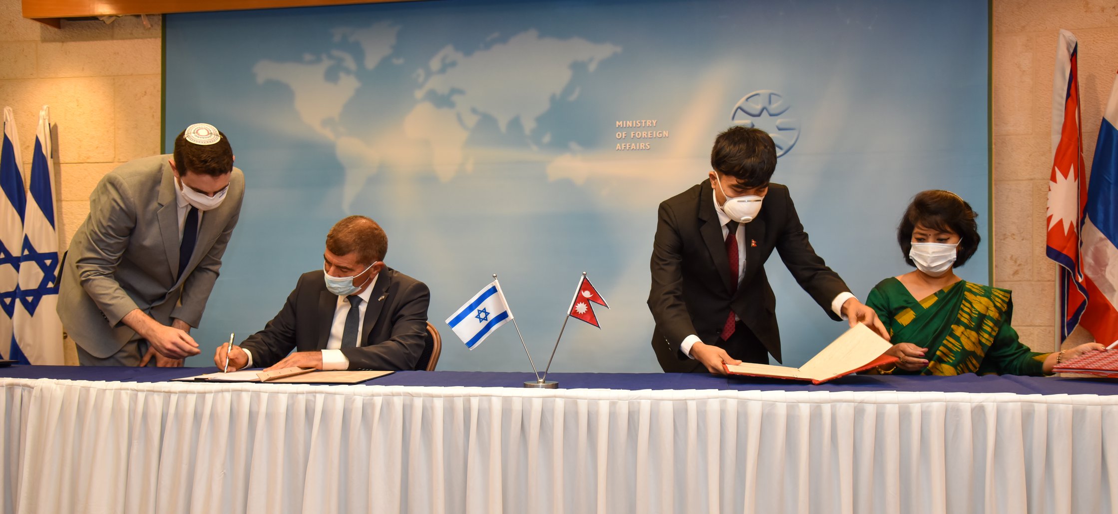 इजरायलको परराष्ट्र मन्त्रालय, जेरुसलेममा आयोजित एक कार्यक्रममा नेपालको तर्फबाट इजरायलका लागि नेपाली राजदूत डा.अन्जान शाक्य र इजरायलको तर्फबाट इजरायली परराष्ट्र मन्त्री गाबी अश्केनाजीले सम्झौतामा हस्ताक्षर गरेको दूतावासले जनाएको छ ।