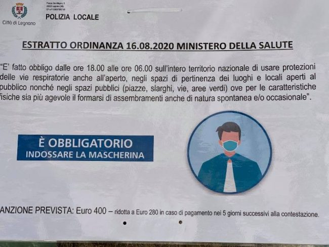 इटालीमा मास्क प्रयोग गर्ने हरुको संख्या न्युन छ। मास्क मुख र नाक नभई पाखुरा र चिउडोमा धेरै देखिन्छ। विशेषगरी बेलुका ६ बजेदेखि मानिसहरु बिना मास्क घुम्न थालेपछि स्वास्थ मन्त्रालयले १७ अगस्टदेखि लागु हुने गरी भिडभाड हुने ठाउँहरुमा बेलुकी ६ बजेदेखि बिहान ६ बजेसम्म मास्क अनिवार्य गरेको छ।
