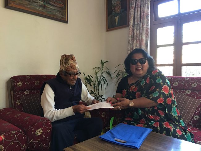 मैले सधैँ “एकदिन गीतको पाण्डुलिपि लिएर म हजुरको घरमै आउँछु ।” भन्ने गर्थेँ ! तर जाने अनुकूलता भने पाएकी थिइनँ ! बल्लतल्ल आज त्यो साइत समेत जुर्यो ! अनिदाजु भाउजूसँग एकदुई घण्टा बसेर आएँ! सोही अवसरमा दाजुसँग भिडियो पनि अनि दाजु भाउजूसँग केही तस्बिरहरू खिचेर फर्किने क्रममा दाजु र भाउजूले “नारायणगोपाल स्मृति सम्मान” समारोहमा जाँदा लिन र पुर्याउने व्यवस्था पनि मैले नै गरिदिन अनुरोध गर्नु भयो र मैले पनि हजुरहरूले कुनै चिन्ता लिनुपर्दैन? मेरो सवारी चालकले हजुरको घर देखेकै छ ! कार्यक्रम बिहानको एघार बजे भएको कारणले साढे दसबजे मैले मोटर पठाउँछु भाउजूले दाजुलाई तयार गरेर राखिदिनु होला भनेर म फर्के !