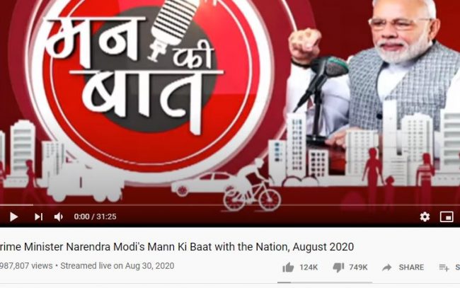 यो कार्यक्रममा मोदी गरेको सम्बोधन भारतीय जना पार्टीको आधिकारिक युट्युब च्यानलमा पनि अपलोड गरिएको छ। तर, यो भिडियोमा मोदीलाई मनपाउने भन्दा मन नपराउनेको संख्या उल्लेख्य रुपमा बढि देखिएको छ।