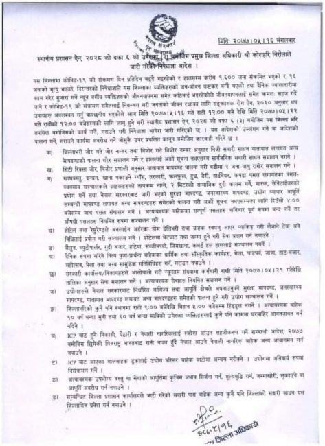 मोरङमा निषेधाज्ञा, प्रदेश नं १ मा ३ हजार सङ्क्रमित