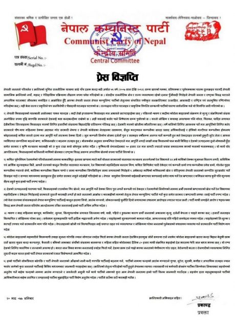 नेकपाका प्रवक्ता प्रकाण्डले शनिबार एक विज्ञप्ति जारी गर्दै यस्तो चेतावनी दिएका हुन्। उनले प्रकरणमा संलग्न रहेका महानिर्देशक मिश्र र ठेकादारहरु चिपछिरिंग लामा, विक्रम पाण्डे, रमेश शर्मा, ग्याल्जे शेपालाई कारबाही गर्ने चेतावनी दिएका हुन्।