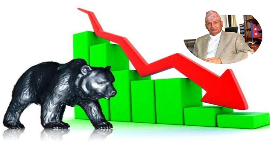काठमाडौं। डा.युवराज खतिवडा अर्थमन्त्री भएकै कारण ओरालो लागेको भनिएको शेयर बजार खतिवडाले अर्थमन्त्रीबाट राजीनामा दिएपछि पनि ओरालो लाग्नबाट रोकिएको छैन।