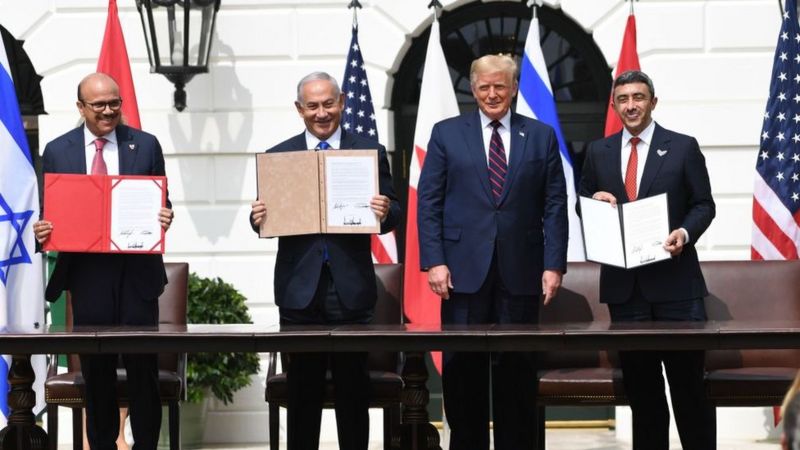 सन् १९४८ मा स्थापना भएयता इजरायललाई मान्यता दिने यूएई तथा बहराइन तेस्रो र चौथो अरब राष्ट्र हुन्। अरू देशले पनि यो कदमलाई पछ्याउने ट्रम्पको आशा छ। तर प्यालेस्टिनीहरूले आफूहरूसँगको द्वन्द्वको समाधान नभएसम्म त्यसो नगर्न आग्रह गरेका छन्।