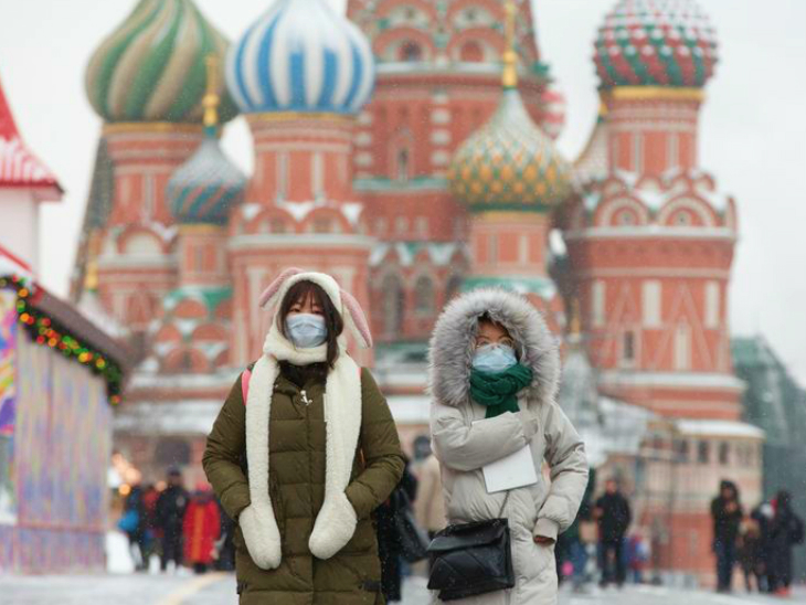 मस्कोकाे एउटा सडकमा हिँड्दै पर्यटक। स्वास्थ्य मन्त्रालयका अनुसार मस्कोमा दुइ दिनमा ३१ जनाकाे काेराेना संक्रमणबाट मृत्यु भइसकेकाे छ।