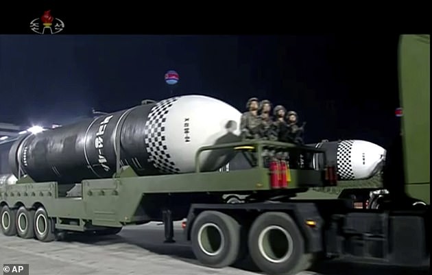 उत्तर कोरियाले परेडमा नयाँ विशाल इन्टरकन्टिनेन्टल ब्यालेस्टिक मिसाइल (आइसीबीएम)सँगै पनडुब्बीबाट लञ्च गरिने ब्यालेस्टिक मिसाइल पनि प्रदर्शन गरेको थियो । तस्वीर र भिडियोका आधारमा विशेषज्ञहरुले उत्तर कोरियाको नयाँ आइसीबीएमको लम्बाइ २५ देखि २६ मिटरसम्म हुन सक्ने बताएका छन् । यो मिसाइलले २ हजार देखि ३ हजार ५ सय किलोसम्म विष्फोटक बोकेर कुनै ठाउँमा खसेर विष्फोट हुन सक्ने अनुमान गरिएको छ । यो मिसाइललाई उत्तर कोरियाले २०१७ मा विकास गरेको आइसीबीएम ह्वासोङ–१५ को उन्नत संस्करण ह्वासोङ–१६ मानिएको छ ।