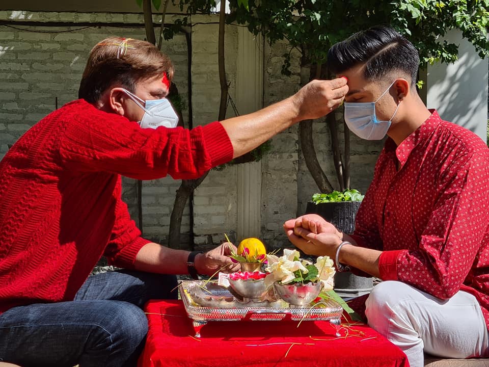 बुवा भुवन केसीसँग टिका थाप्दै अनमोल केसी