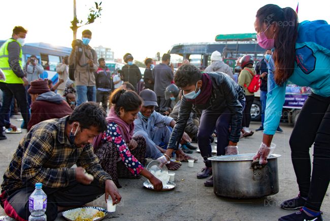 माहामारीकाबीच सरकारले गरेको लकडाउनले कतिपयको रोजगारी गुमेपछि विगत केही महिनादेखि ‘हाम्रो टिम नेपाल’ र हन्ड्रेड ग्रुप नामको संस्थाले खाना खुवाउँदै आएका छन् ।