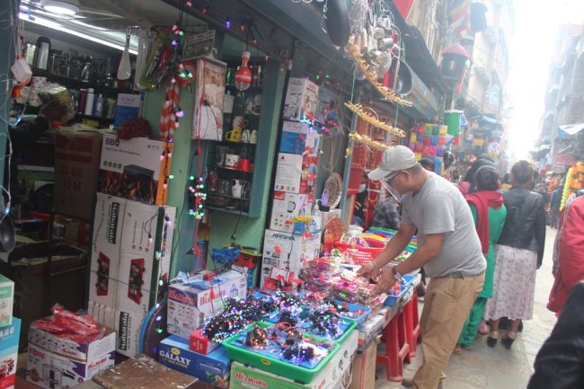 त्यसका लागि व्यापारीहरुले दशैँ अघिदेखि नै तयारी गरेर बसेका हुन्छन्। बिगतका वर्षहरुमा तिहारको किनमेलका लागि काठमाडौँको मुख्य बजारहरुमा निकै भिडभाड हुने गर्दथ्यो। तर यो वर्ष तिहार भित्रिनै लाग्दासमेत बजारमा तिहारको रौनक देखिँदैन।