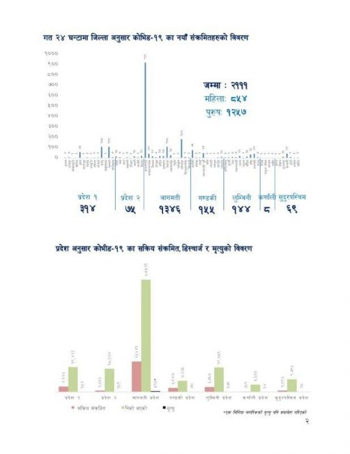 काठमाडौं । नेपालमा हाल कोरोनाका सक्रिय संक्रमितको संख्या ३७ हजार २२ रहेको छ । पछिल्लो २४ घण्टामा थप २१ सय ११ जनामा कोरोना भाइरसको संक्रमण पुष्टि भएको छ । योसँगै कोरोना संक्रमितको संख्या २ लाख ६ हजार ३५३ पुगेको छ ।
