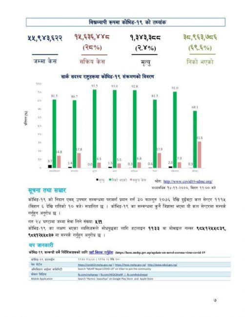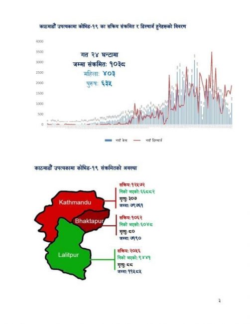 पछिल्लो २४ घण्टामा ३५ सय ३८ जना निको भएका छन् । हालसम्म संक्रमणमुक्त हुनेको संख्या १ लाख ८२ हजार ७८० पुगेको छ । पछिल्लो २४ घण्टामा १२ जना थपिएसँगै कोरोनाका कारण ज्यान गुमाउनेको संख्या १ हजार २५९ पुगेको छ।