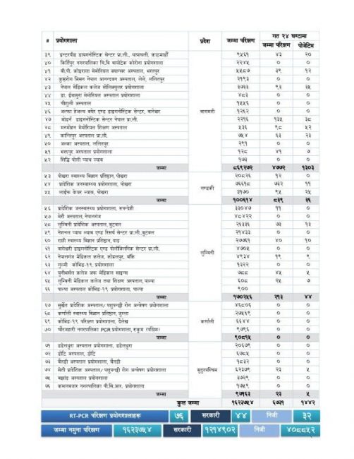 यस्तै हालसम्म ९१० जना क्वारेन्टिनमा रहेका छन् । हालसम्म १६ लाख २३ हजार ७५४ जनाको पीसीआर परिक्षण भएको छ ।