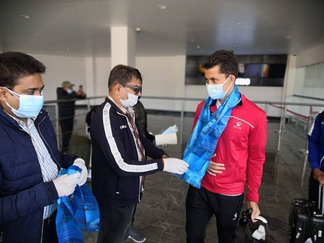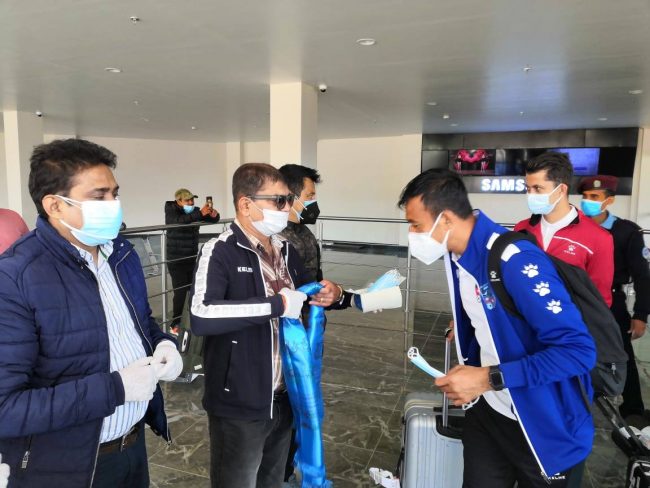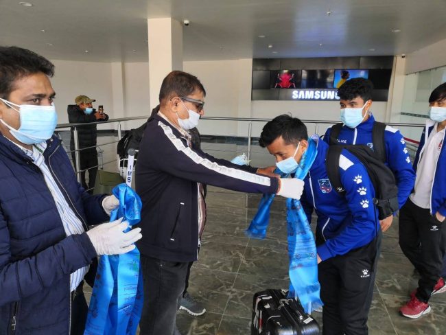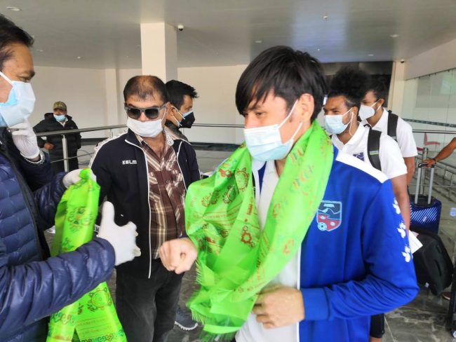 काठमाडौं । मैत्रीपूर्ण खेल खेल्न बङलादेश गएको नेपाली फुटबल टोली बिहीवार स्वदेश फिर्ता भएको छ । टोलीलाई स्वागत गर्न अखिल नेपाल फुटबल संघ (एन्फा)का उपाध्यक्ष शिक्षित पराजुली त्रिभुवन अन्तराष्ट्रिय विमान स्थल पुगेका थिए । टोलीसँगै नेपाली टोलीका कप्तान एवम गोलकिपर किरण चेम्जोङ फर्किएका छैनन । उनी आई लिग खेल्न बङलादेश प्रस्थान गरेका छन । नेपाली टोलीका व्यवस्थापक मधुसुदन उपाध्याय पनि कोरोना पोजेटिभ देखिएका कारण बङलादेशमै रहेका छन । हाल उनी ढाकास्थित बंगबन्धु शिख मुजिब मेडिकल अस्पतालमा आईसोलेसनमा रहेका छन । उनको स्वास्थ्य अवस्था सामान्य छ ।