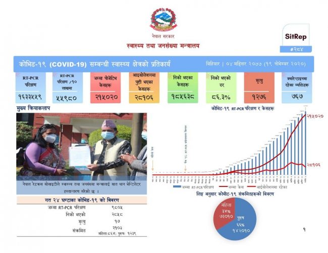 योसँगै नेपालमा कोरोना संक्रमितको कुल संख्या २ लाख १५ हजार २० पुगेको छ ।