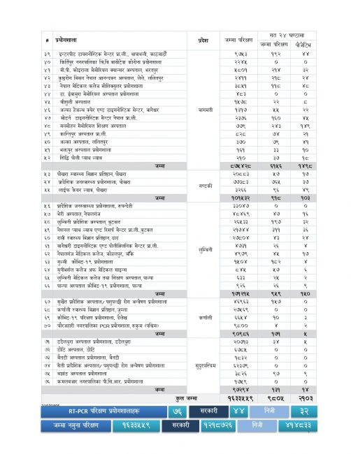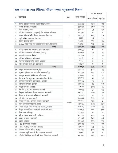 यस्तै हालसम्म ७६७ जना क्वारेन्टिनमा रहेका छन् । हालसम्म १६ लाख ३३ हजार ५५९ जनाको पीसीआर परिक्षण भएको छ ।
