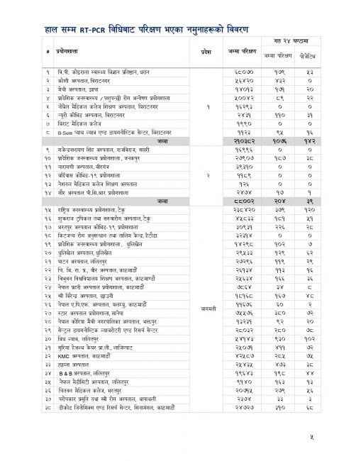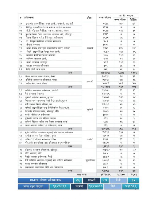 यस्तै हालसम्म ७५३ जना क्वारेन्टिनमा रहेका छन् । हालसम्म १६ लाख ४३ हजार ८९९ जनाको पीसीआर परिक्षण भएको छ ।