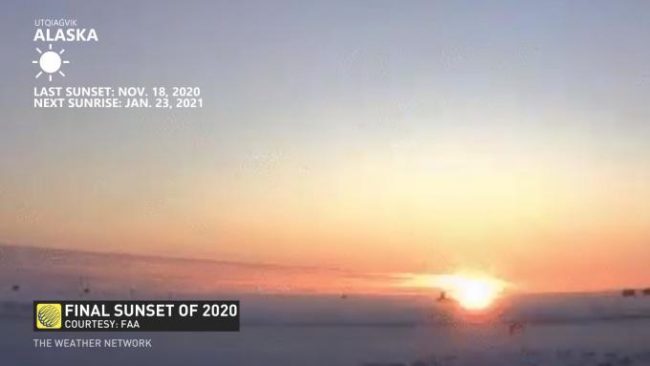 द वेदर नेटवर्कको रिपोर्टअनुसार १८ नोभेम्बरमा अलास्कामा २०२० को अन्तिम सूर्यास्त भएको थियो । यस पटक यहाँका बासिन्दाले शहरमा बनेको एक फिल्म हेरेर धँध्यारो भएको उत्सव मनाए । ४ हजार जनसंख्या भएको उतकियागविकमा अब सूर्य नउदाउँदा मौसम निकै चिसो हुन्छ ।