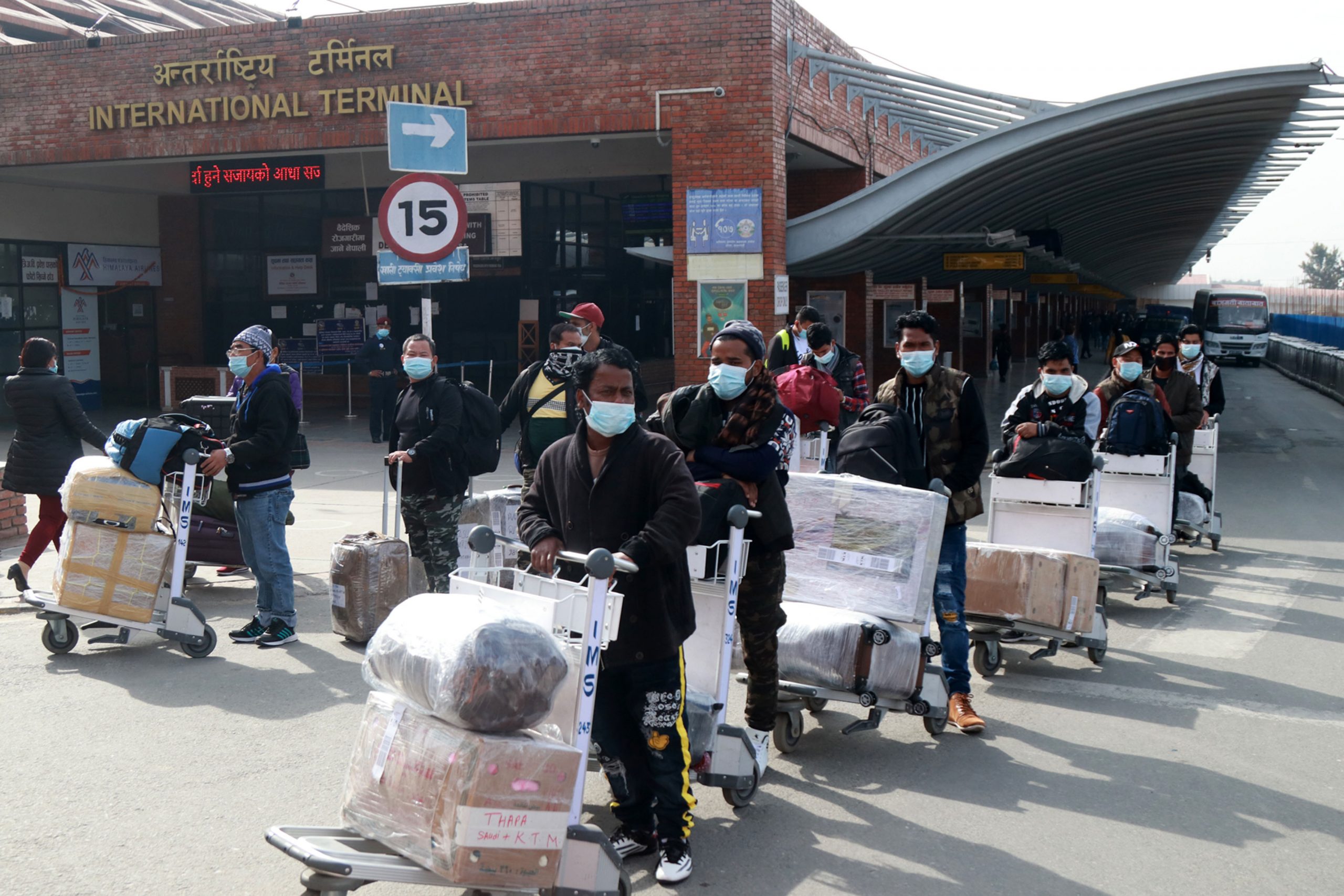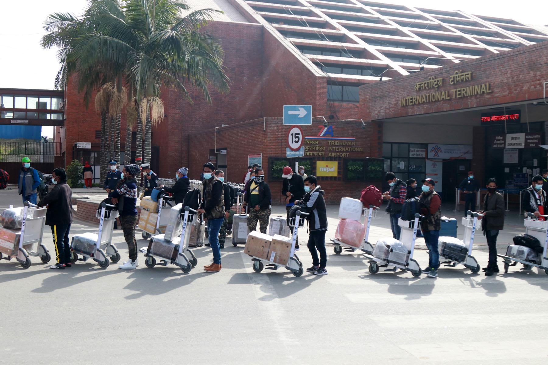 विदेशबाट आएकाहरुलाई होटल क्वारेन्टाइनमा राख्नको लागि विमानस्थलमा होल्डिङ गराइँदै