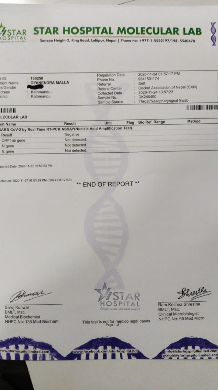 काठमाडौं । नेपाली राष्ट्रिय क्रिकेट टिमका कप्तान ज्ञानेन्द्र मल्ल कोरोना भाईरसको संक्रमणबाट मुक्त भएका छन् ।