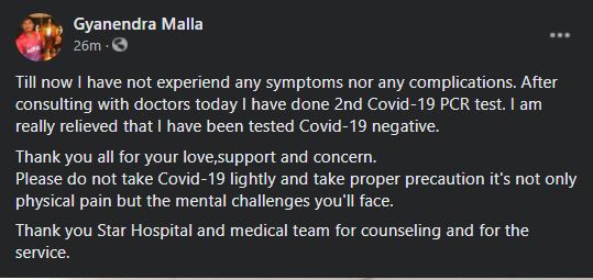 कप्तान ज्ञानेन्द्र मल्ल कोरोना संक्रमण मुक्त
