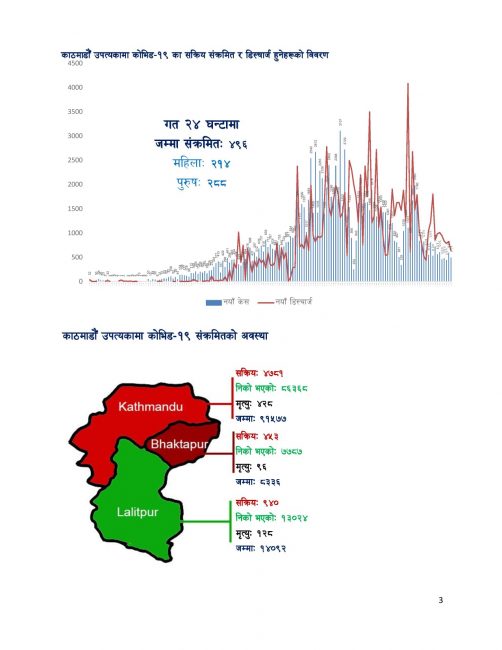 पछिल्लो २४ घण्टामा १ हजार ४८३ जना निको भएका छन् । हालसम्म संक्रमणमुक्त हुनेको संख्या २ लाख ३० हजार ५३७ पुगेको छ । पछिल्लो २४ घण्टामा १४ जना थपिएसँगै कोरोनाका कारण ज्यान गुमाउनेको संख्या १ हजार ६५१ पुगेको छ।