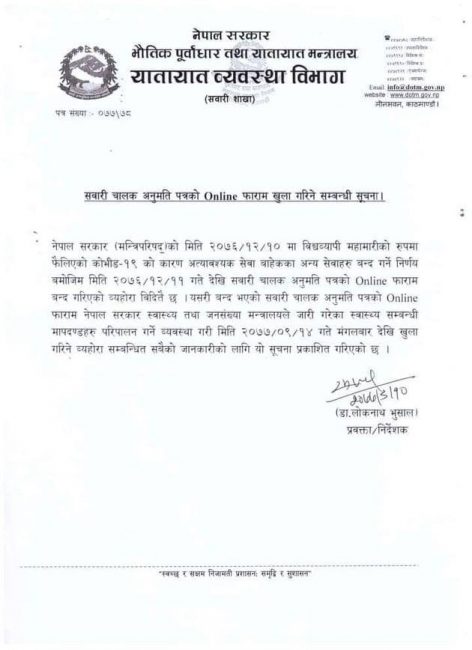 कोरोना महामारीका कारण बिभागले अत्यावश्यक बाहेकका सबै काम गत चैत्र ११ गत्तेदेखि बन्द भएको थियो।