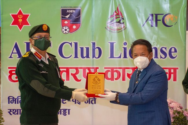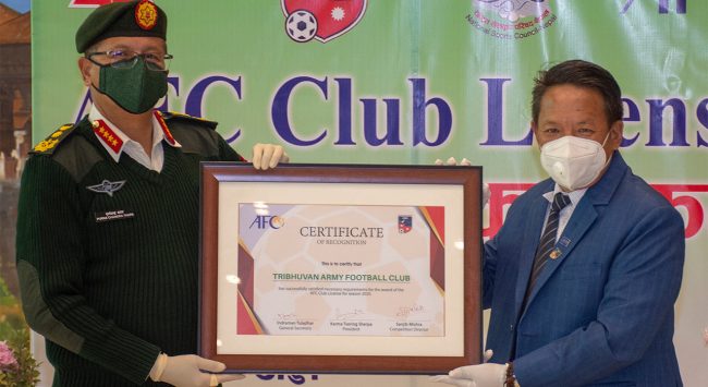 एन्फाले नेपालका सबै ‘ए’ डिभिजन क्लबलाई एएफसी लाइसेन्स प्रक्रिया पूरा गर्न निर्देशन दिए पनि आर्मी क्लबबाहेक कुनै पनि क्लबले मापदण्ड पूरा गर्न सकेका छैनन् । त्रिभुवन आर्मी फुटबल क्लब एएफसी लाइसेन्स प्राप्त गर्ने नेपालकै पहिलो क्लब हो । क्लब लाइसेन्स हस्तान्तरण कार्यक्रममा राष्ट्रिय खेलकूद परिषद् (राखेप) का सदस्यसचिव रमेशकुमार सिलवालले आर्मी क्लबले उक्त लाइसेन्स प्राप्त गर्नु सिङ्गो मुलुकको खेलकूद क्षेत्रकै सफलता भएको बताए ।