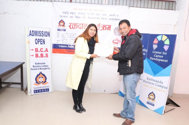 कार्यक्रममा ७३ जना बिद्यार्थि, अभिभावक तथा स्थानिय दाताहरूले रक्तदान गरेको विद्यालयले जनाएको छ। समृद्धि स्कुल बालाजुको क्लब २५ का बिद्यार्थिहरूले व्यवस्थापन गरेको उक्त कार्यक्रममा रक्तदाताहरू तथा सहयोगी संस्थाहरूलाई समृद्धि स्कुलका सि.ई.ओ ÷ प्रिन्सीपल नरेशप्रसाद श्रेष्ठ, चःमति नेवाः खलःका अध्यक्ष पुर्णकाजी ज्यापु लगायतले प्रमाणपत्र वितरण गरेका थिए।