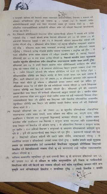 काठमाडौं। सर्वोच्च अदालतले प्रधानमन्त्री केपी शर्मा ओलीलाई किन संसद् विघटन गरेको भनी मागेको जवाफको प्रधानमन्त्री ओलीले आइतबार लिखित जवाफ दिएका छन्। संसद् विघटनविरुद्ध परेका रिटमाथि सुनुवाई गर्दै सर्वोच्चको संवैधानिक इजलासले पुस १० मा कारण देखाउ आदेश जारी गरेको थियो।