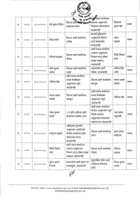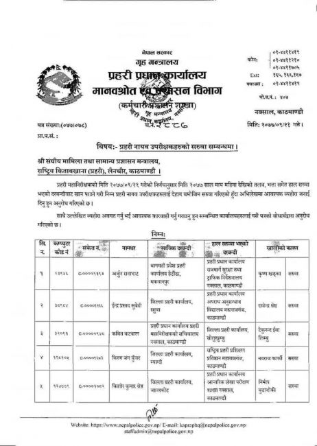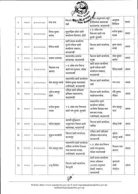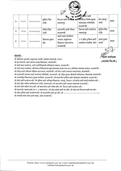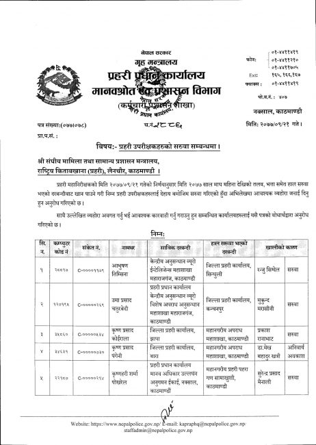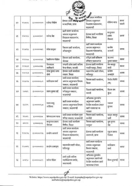 नेपाल प्रहरीका ३० एसपी र ६९ डीएसपीको सरुवा (सूचीसहित)