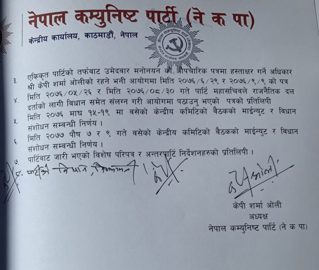 ओली समूहको पत्र(पूर्णपाठ)