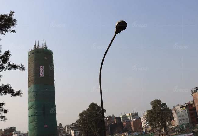 पुनःनिर्माणको अन्तिम चरणमा पुगेकाे धरहरा यस्ताे बन्दैछ