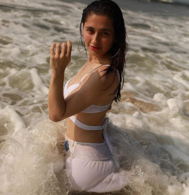 सेतो ब्रालेटमा समुद्र किनारमा पोज, संजीदाका तस्वीरहरु चर्चामा