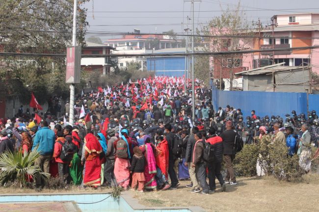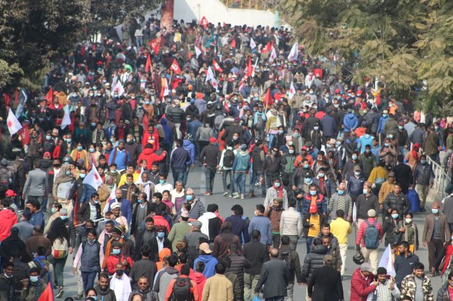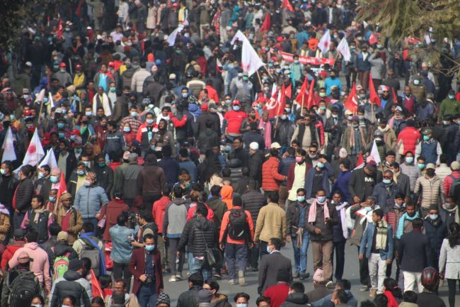 काठमाडाैं। प्रतिनिधिसभा विघटनको विरोधमा नेपाल कम्युनिष्ट पार्टी (नेकपा) प्रचण्ड–नेपाल समूहले राजधानीका विभिन्न स्थानबाट विरोध जुलुस निकालेको छ।