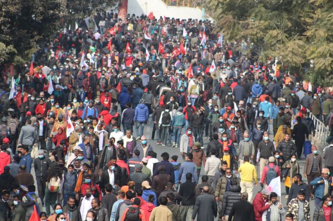 जुलुसमा काठमाडौँ उपत्यका र आसपासका जिल्लाबाट नेकपाका नेता, कार्यकर्ता तथा जनसमुदाय बाक्लो उपस्थिति रहेको छ। जुलुसपछि आयोजित सभालाई नेकपाका अध्यक्षद्वय माधवकुमार नेपाल र पुष्पकमल दाहाल ‘प्रचण्ड’, वरिष्ठ नेता झलनाथ खनाललगायतले सम्बोधन गर्ने जनाइएको छ। यही माघ ३ गते बसेको सङ्घर्ष समितिको बैठकले प्रतिनिधिसभा विघटनको विरोध तथा लोकतन्त्र, संविधान र जनअधिकारको रक्षाका लागि माघ ९ गते विरोध प्रदर्शन गर्ने निर्णय गरेको थियो। संसद् विघटनविरुद्ध प्रचण्ड–नेपाल समूहको नेकपाले विरोध गर्दै आइरहेको छ।