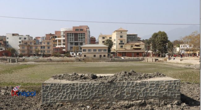 पुर्ननिर्माणमा विश्वव्यापी संकट बनेको कोरोना भाइरसको असर परेकोले निमार्णमा ढिलाई भएको आयोजना कार्यलयको भनाइ छ। सरकारको रेकर्डमा ४८ रोपनी जग्गा भएपनि हाल करिव २२ रोपनी जग्गा मात्रै पोखरी हाताभित्र छ।