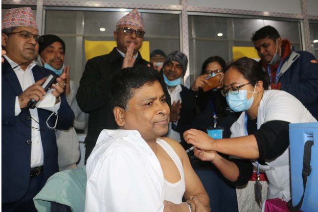 प्रधानमन्त्रीले खोप अभियानको आरम्भ गरेपछि देशभरका १२० खोप केन्द्रहरुमा अग्रपंक्तिमा खटिने स्वास्थ्यकर्मी, सुरक्षाकर्मी, सफाइ कर्मचारी, चालक, एम्बुलेन्स चालक लगायतलाई खोप दिइएको छ ।