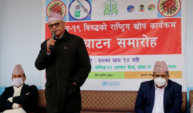 आज एकै दिन १२ हजार जनाले खोप लगाउने शुभारम्भ समारोहमा स्वास्थ्य तथा जनसंख्या मन्त्री हृदयेश त्रिपाठीले जानकारी दिए ।