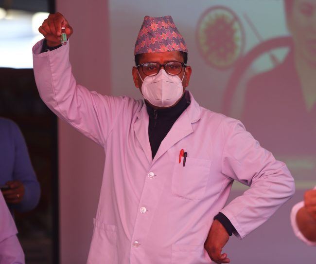 नेपाल दक्षिण एशियामा कोरोनाविरुद्ध खोप अभियान चलाउने भारतपछि दोस्रो मुलुक भएको छ । भारतले अनुदानमा दिएको खोप पहिलो चरणमा लगाउन थालिएको हो ।