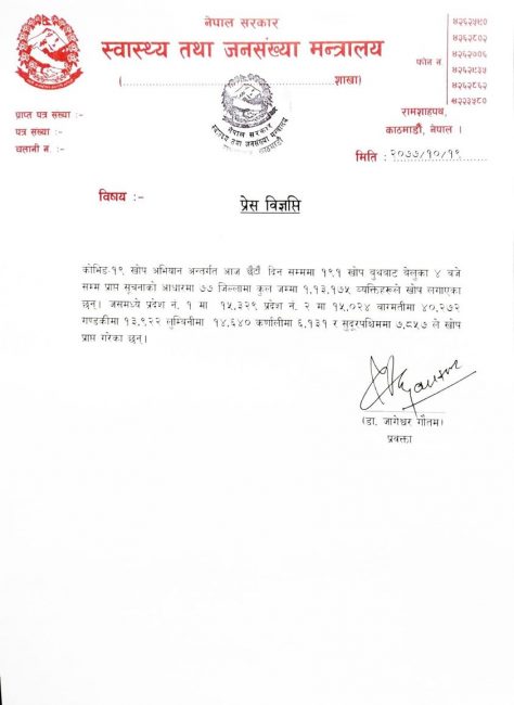सोमबारसम्म एक लाखले लगाए काेराेना खोप