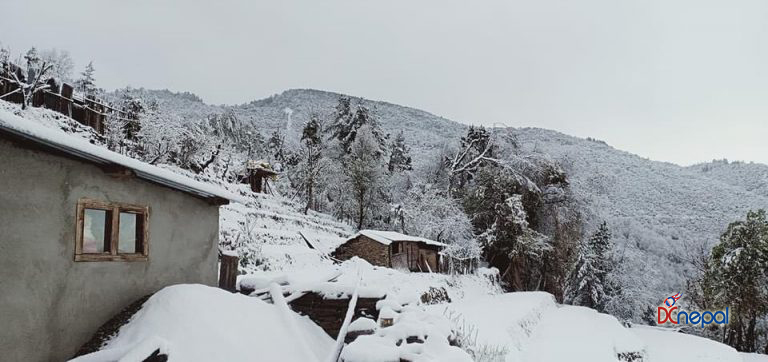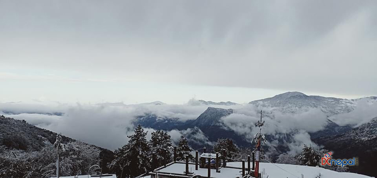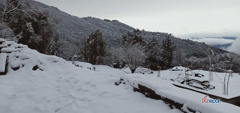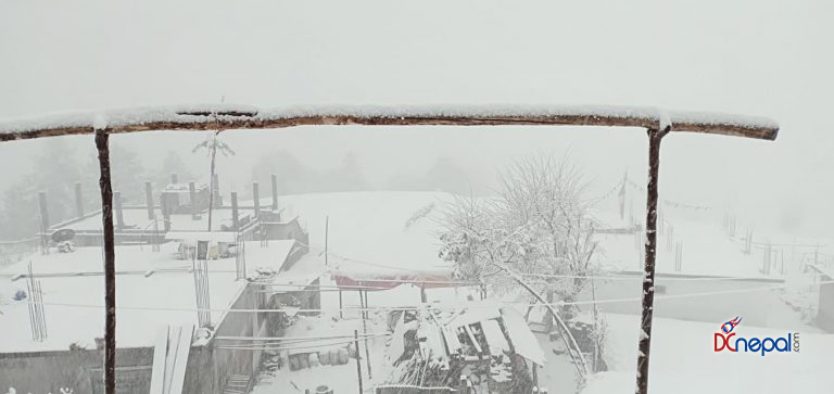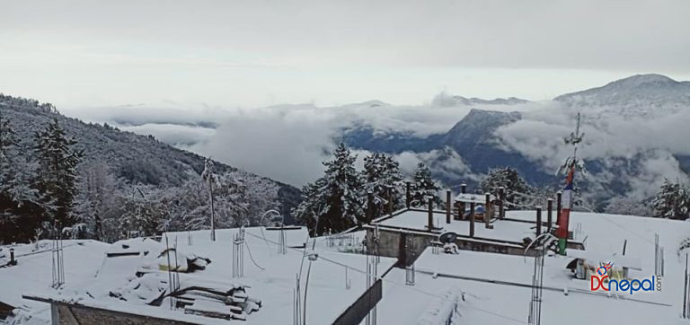 काठमाडौं । शनिबार सिन्धुपाल्चोकस्थित हेलम्बुका विभिन्न गाउँहरुमा हिउँ परेको छ । तार्केघ्याङ, ताक्पाखर्क, शेर्माथाङ लगायतका गाउँहरुमा हिउँ परेसँगै चिसो बढेको छ।